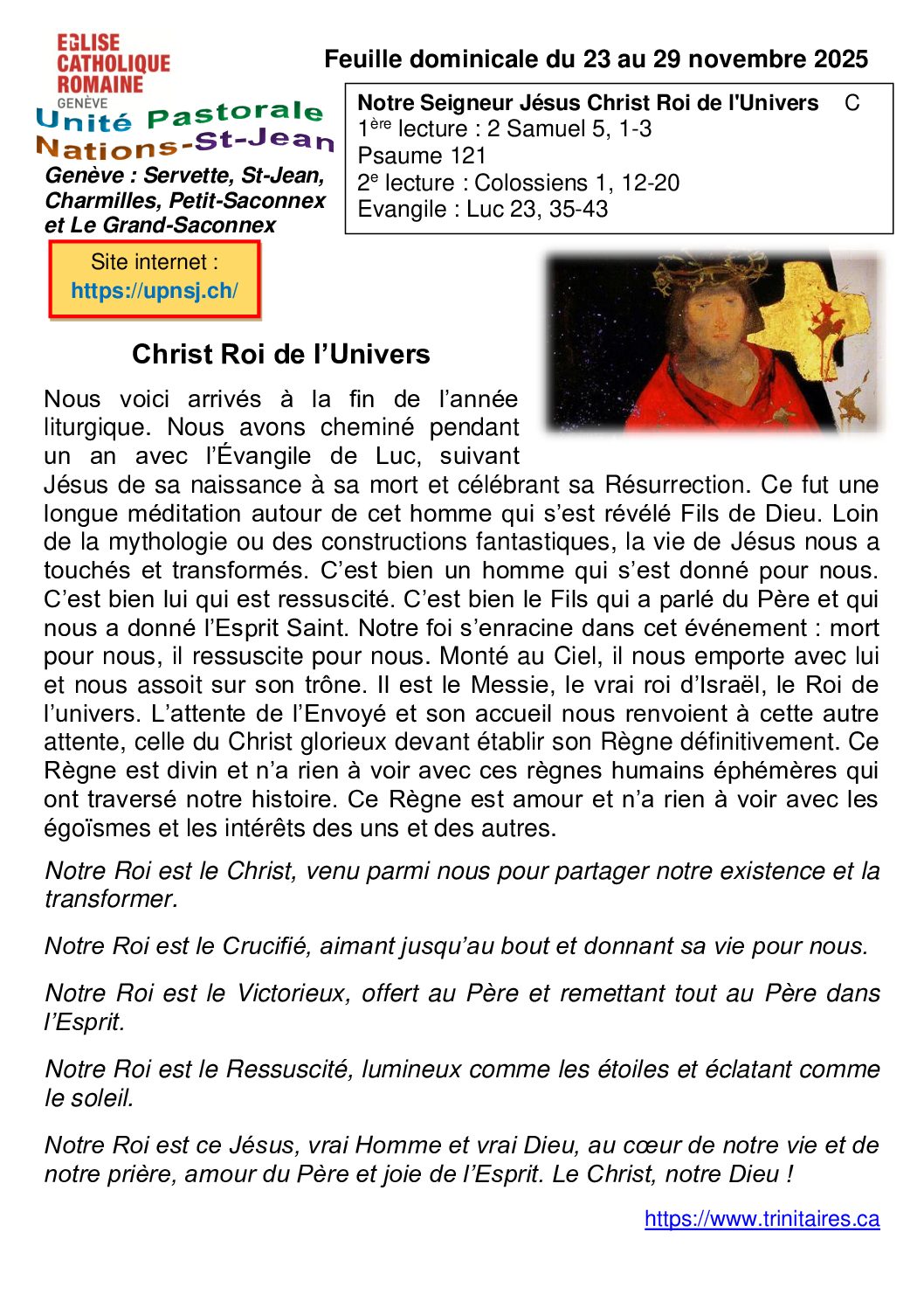Dimanche 30 novembre 2025 Église de St-Jean XXIII Messe à 11h00 présidée par son Excellence…