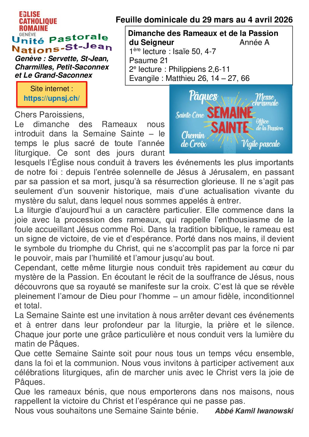 MESSES EN FAMILLE DES RAMEAUX A ST-ANTOINE ET ST-JEAN XXIII
