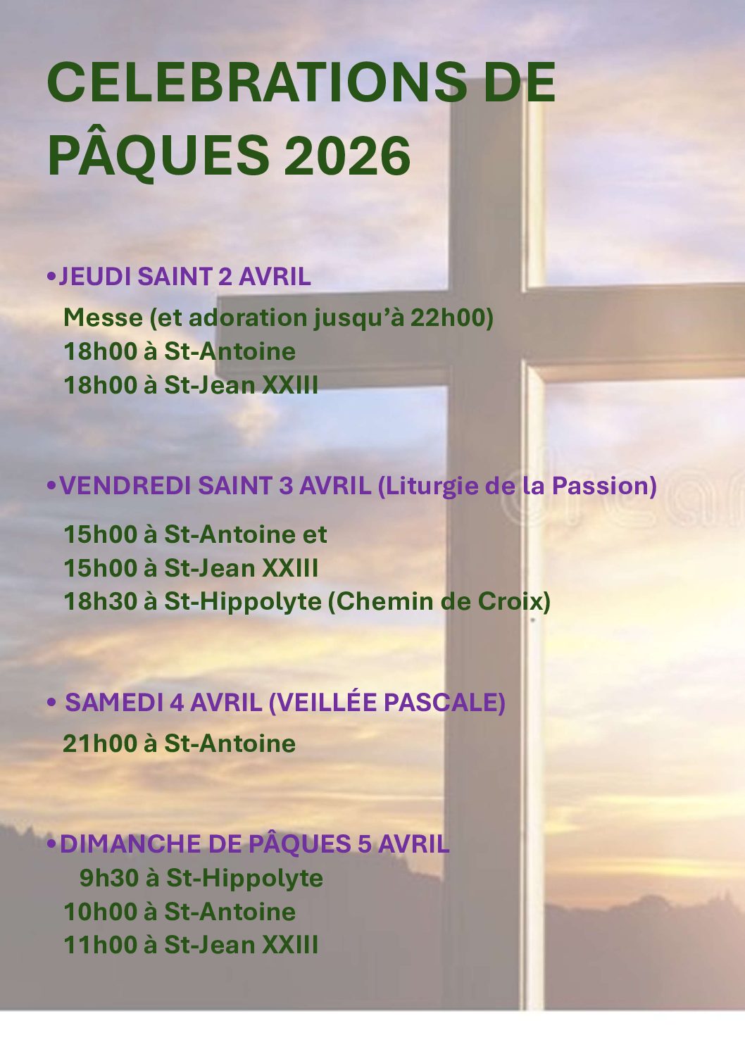 Dans les églises de St-Antoine de Padoue, St-Jean XXIII et St-Hippolyte