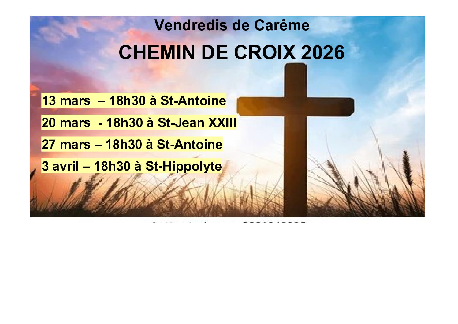 Chemin de Croix pour les 4 paroisses, églises de St-Antoine de Padoue, St-Jean XXIII et St-Hippolyte