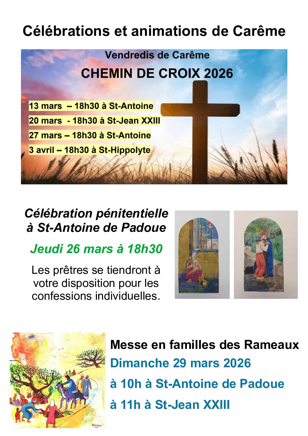 MESSES EN FAMILLE DES RAMEAUX A ST-ANTOINE ET ST-JEAN XXIII