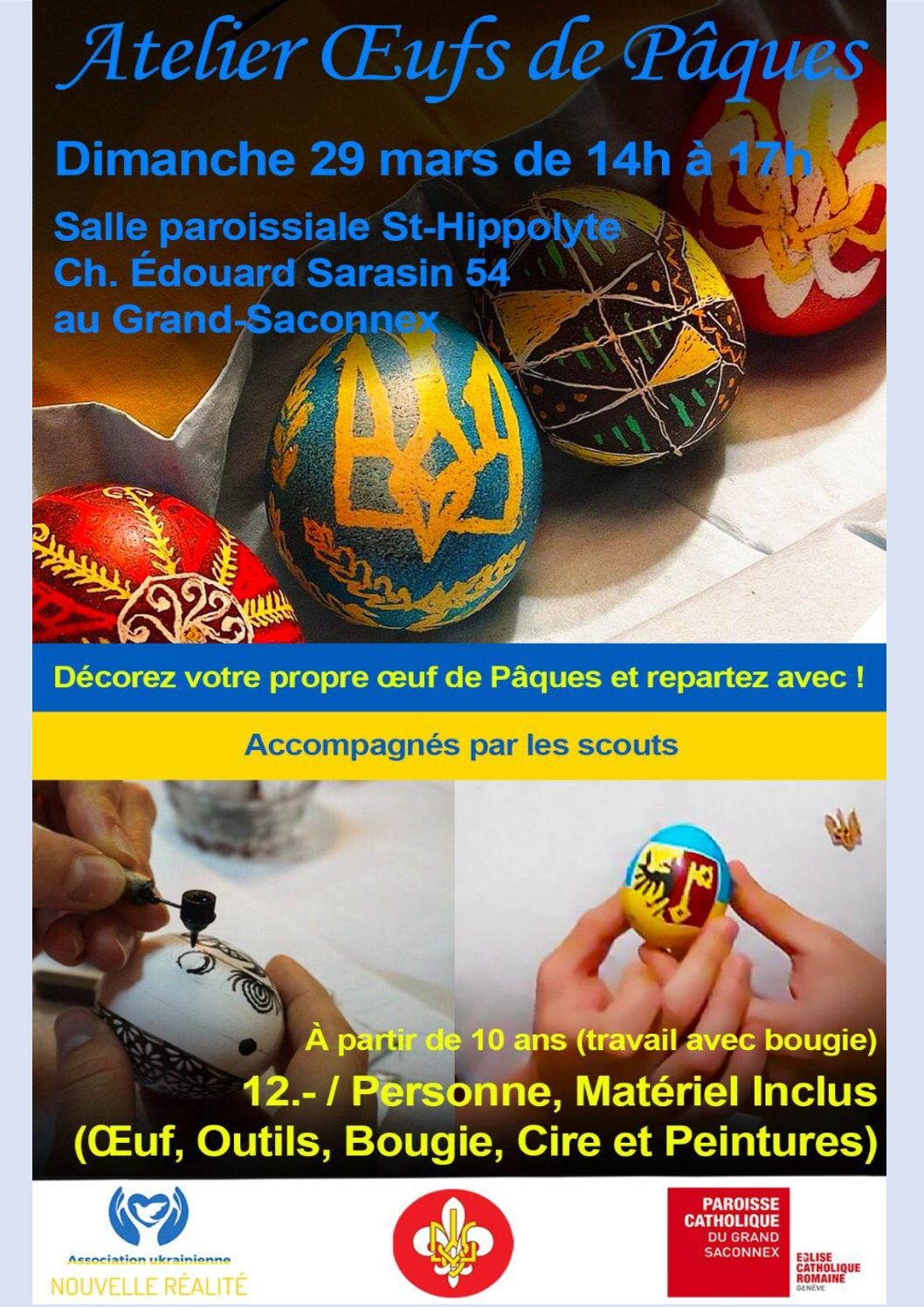 Dimanche 29 mars entre 14h00 et 17h00 dans la salle paroissiale de St-Hippolyte En Ukraine, comme dans de nombreux pays, la préparation d’œufs de Pâques est une tradition ! Les…