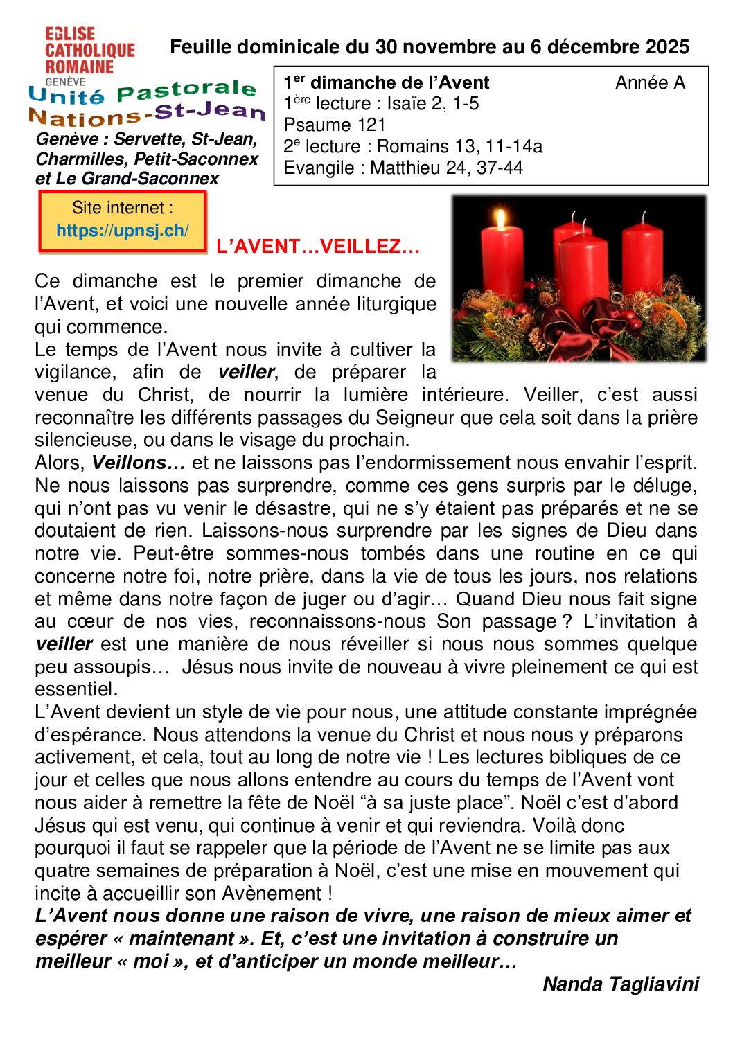 Sur la page « Catéchèse » dont voici le lien https://upnsj.ch/catechese/, vous trouverez toutes les explications pour inscrire vos enfants au nouveau parcours de catéchèse 2025/2026 de notre Unité Pastorale Nations-St-Jean. Nous…