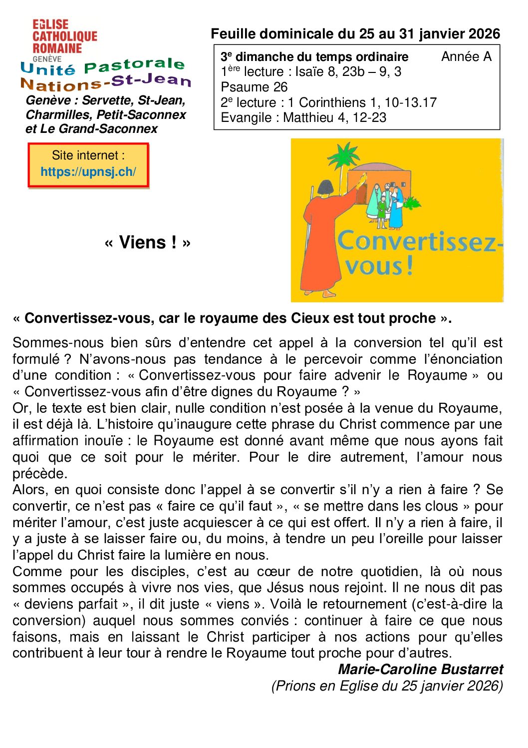 Dimanche 25 janvier 2026 Temple protestant du Petit-Saconnex à 10h00 : Culte avec la participation de l’abbé Kamil Iwanowski