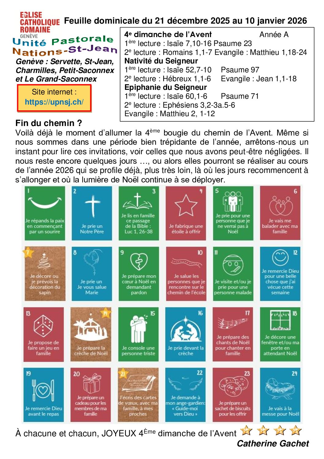 • Feuille dominicale du 21 décembre 2025 au 10 janvier 2026 décembre 20, 2025